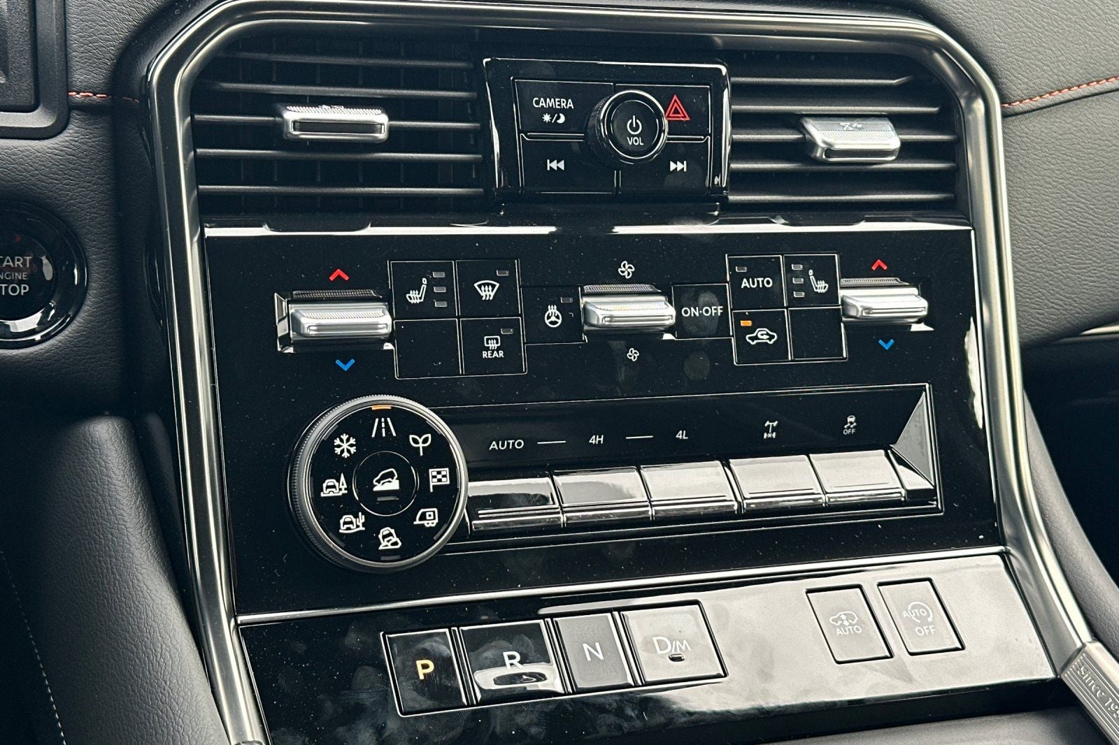 Captain's Chair Seat Package (2nd Row Center Console with Two Cupholders, 2nd Row Outboard Captain's Chairs with Armrests, and EZ Flex Second Row Seating System with One Touch Release), 4WD, 12 Speakers, 3rd row seats: split-bench, 4-Wheel Disc Brakes, ABS brakes, Adaptive suspension, Air Conditioning, Alloy wheels, AM/FM radio: SiriusXM w/360L, Anti-whiplash front head restraints, Apple CarPlay/Android Auto, Auto High-beam Headlights, Auto tilt-away steering wheel, Auto-dimming door mirrors, Auto-dimming Rear-View mirror, Auto-leveling suspension, Automatic temperature control, Brake assist, Bumpers: body-color, Compass, Delay-off headlights, Driver door bin, Driver vanity mirror, Dual front impact airbags, Dual front side impact airbags, Electronic Stability Control, Emergency communication system: NissanConnect Services, Four wheel independent suspension, Front anti-roll bar, Front Bucket Seats, Front Center Armrest, Front dual zone A/C, Front fog lights, Front reading lights, Front Tow Hooks, Fully automatic headlights, Garage door transmitter: myQ Connected Garage, Genuine wood dashboard insert, Heated door mirrors, Heated Front Bucket Seats, Heated front seats, Heated steering wheel, HVAC memory, Illuminated entry, Knee airbag, Leather steering wheel, Low tire pressure warning, Memory seat, Navigation system: Google Maps, Occupant sensing airbag, Outside temperature display, Overhead airbag, Overhead console, Panic alarm, Passenger door bin, Passenger vanity mirror, Power door mirrors, Power driver seat, Power Liftgate, Power passenger seat, Power steering, Power windows, Premium Paint and 2-Tone Roof, PRO-4X Carpeted Floor Mats with Captain's Chair, Pro-4x Leather Quilted Insert Seat Trim, PRO-4X Mud Guards, Radio: NissanConnect with SiriusXM 360L, Rain sensing wipers, Rear air conditioning, Rear anti-roll bar, Rear Bumper Protector, Rear reading lights, Rear seat center armrest, Rear window defroster, Rear window wiper, Reclining 3rd row seat, Remote keyless entry, Security system, Speed control, Speed-sensing steering, Speed-Sensitive Wipers, Split folding rear seat, Spoiler, Steering wheel memory, Steering wheel mounted audio controls, Tachometer, Telescoping steering wheel, Tilt steering wheel, Traction control, Trip computer, Turn signal indicator mirrors, Variably intermittent wipers, Voltmeter, and Wheels: 20 x 8.5J Painted PRO-4X Alloy.
