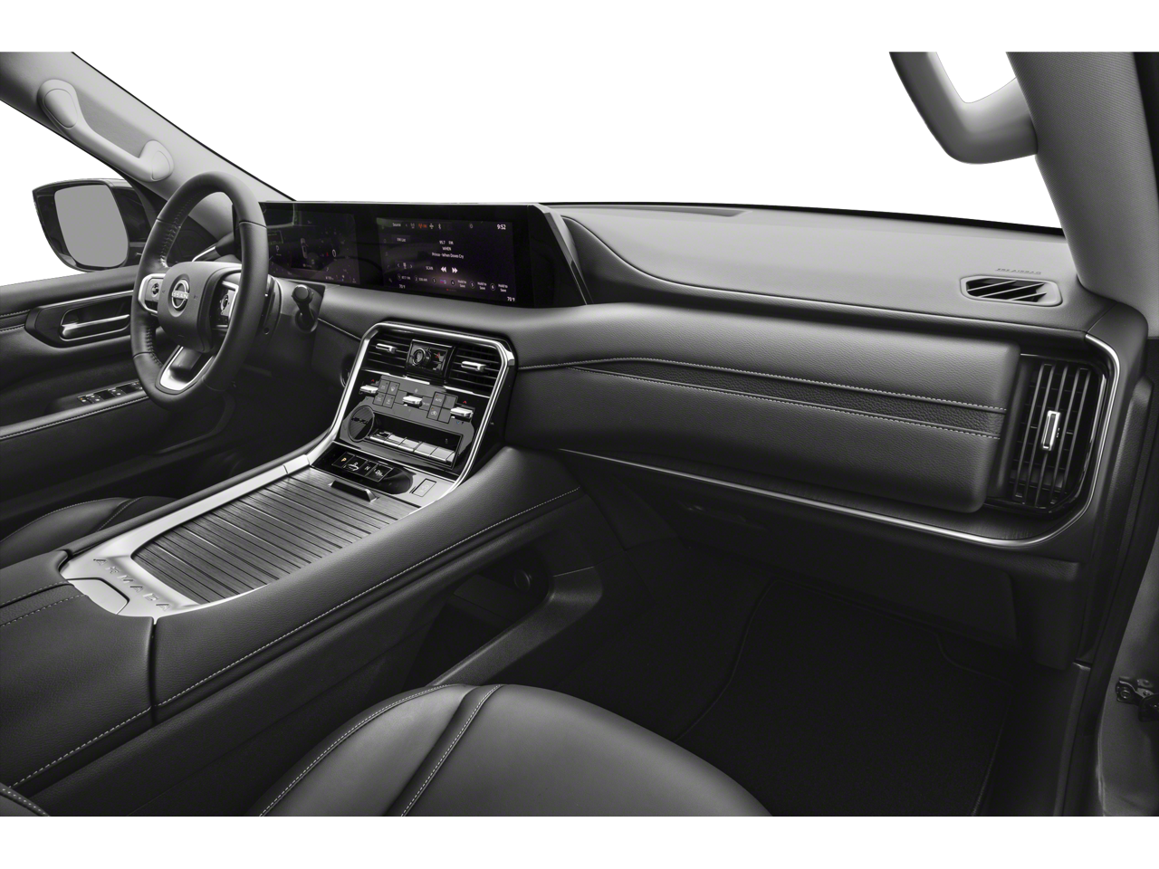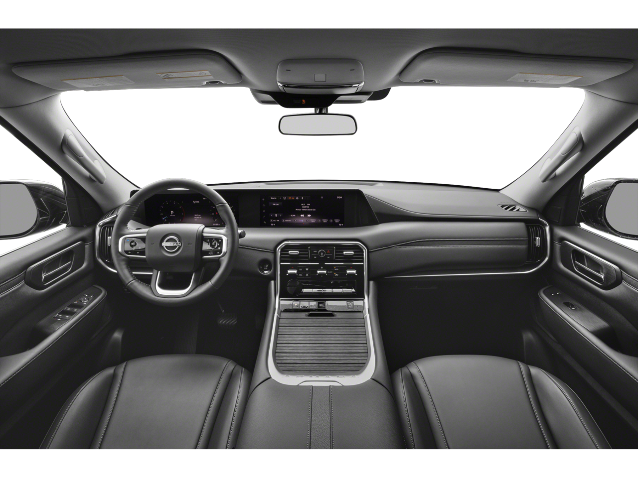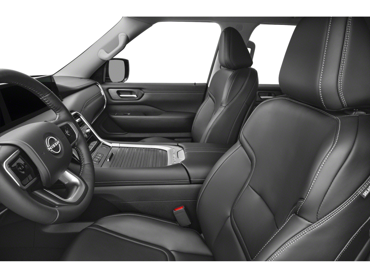 18 x 8J Alloy Wheels, 3rd row seats: split-bench, 4-Wheel Disc Brakes, 6 Speakers, ABS brakes, Air Conditioning, Alloy wheels, AM/FM radio: SiriusXM w/360L, Anti-whiplash front head restraints, Apple CarPlay/Android Auto, Auto High-beam Headlights, Auto-leveling suspension, Automatic temperature control, Brake assist, Bumpers: body-color, Carpeted Floor Mats with Bench Seat, Center Front Spoiler, Compass, Delay-off headlights, Driver door bin, Driver vanity mirror, Dual front impact airbags, Dual front side impact airbags, Electronic Stability Control, Emergency communication system: NissanConnect Services, Exterior Parking Camera Rear, Four wheel independent suspension, Front anti-roll bar, Front Bucket Seats, Front Center Armrest, Front dual zone A/C, Front reading lights, Fully automatic headlights, Garage door transmitter: myQ Connected Garage, HVAC memory, Illuminated entry, Knee airbag, Leather steering wheel, Leatherette Seat Trim, Low tire pressure warning, Occupant sensing airbag, Outside temperature display, Overhead airbag, Overhead console, Panic alarm, Passenger door bin, Passenger vanity mirror, Power door mirrors, Power driver seat, Power passenger seat, Power steering, Power windows, Radio: NissanConnect with SiriusXM 360L, Rain sensing wipers, Rear air conditioning, Rear anti-roll bar, Rear reading lights, Rear seat center armrest, Rear window defroster, Rear window wiper, Reclining 3rd row seat, Remote keyless entry, Security system, Speed control, Speed-sensing steering, Speed-Sensitive Wipers, Splash Guards, Split folding rear seat, Spoiler, Steering wheel mounted audio controls, Tachometer, Telescoping steering wheel, Tilt steering wheel, Traction control, Trip computer, Variably intermittent wipers, and Voltmeter.