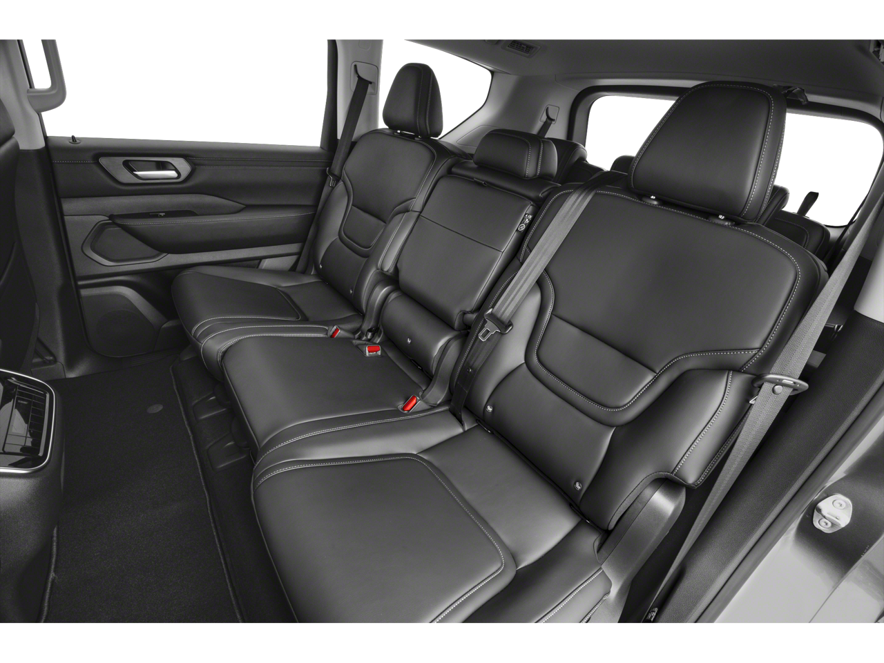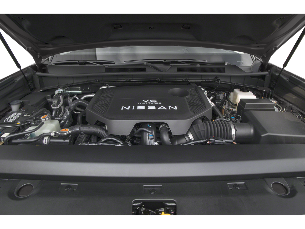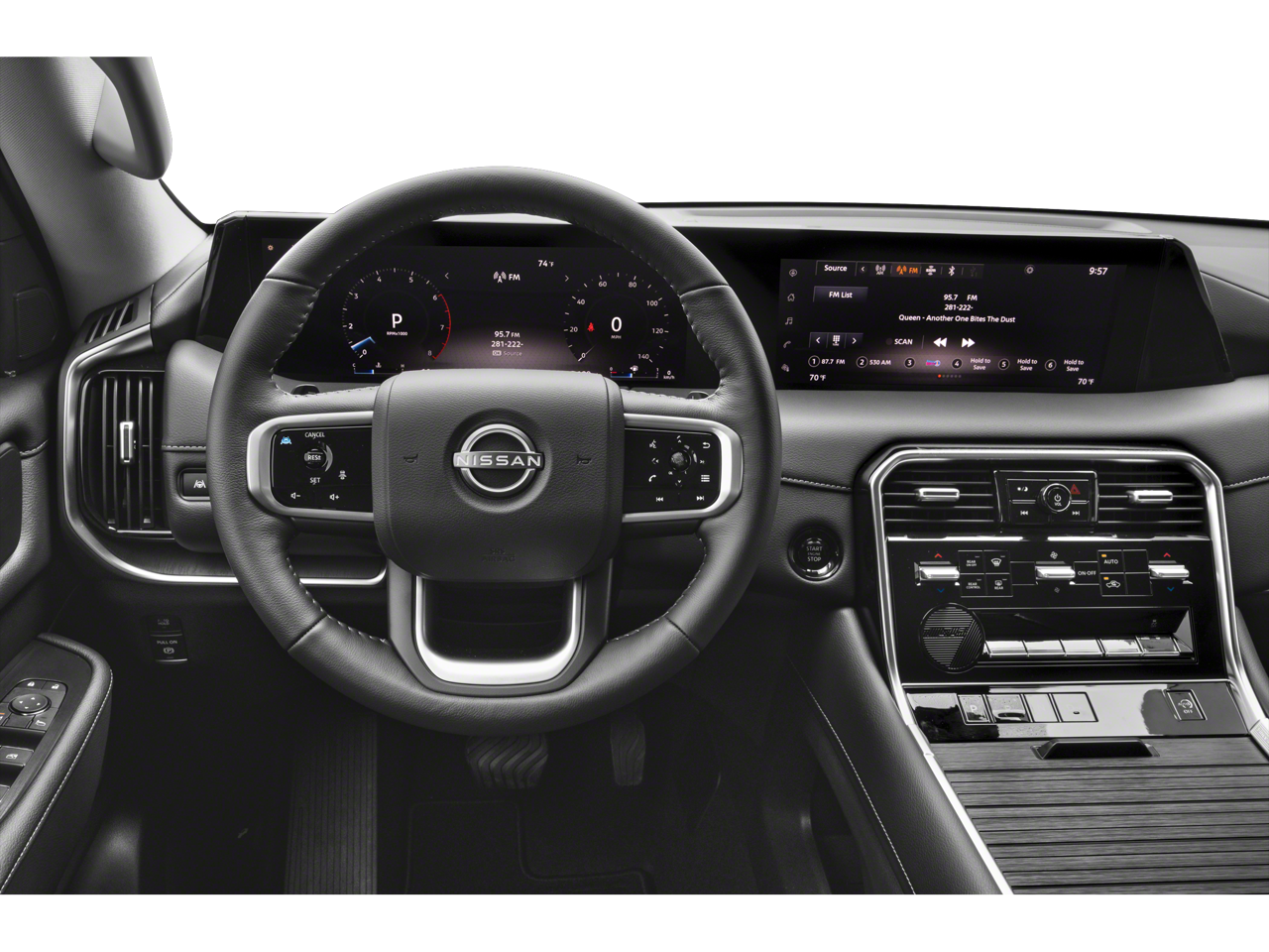 18 x 8J Alloy Wheels, 3rd row seats: split-bench, 4-Wheel Disc Brakes, 6 Speakers, ABS brakes, Air Conditioning, Alloy wheels, AM/FM radio: SiriusXM w/360L, Anti-whiplash front head restraints, Apple CarPlay/Android Auto, Auto High-beam Headlights, Auto-leveling suspension, Automatic temperature control, Brake assist, Bumpers: body-color, Carpeted Floor Mats with Bench Seat, Center Front Spoiler, Compass, Delay-off headlights, Driver door bin, Driver vanity mirror, Dual front impact airbags, Dual front side impact airbags, Electronic Stability Control, Emergency communication system: NissanConnect Services, Exterior Parking Camera Rear, Four wheel independent suspension, Front anti-roll bar, Front Bucket Seats, Front Center Armrest, Front dual zone A/C, Front reading lights, Fully automatic headlights, Garage door transmitter: myQ Connected Garage, HVAC memory, Illuminated entry, Knee airbag, Leather steering wheel, Leatherette Seat Trim, Low tire pressure warning, Occupant sensing airbag, Outside temperature display, Overhead airbag, Overhead console, Panic alarm, Passenger door bin, Passenger vanity mirror, Power door mirrors, Power driver seat, Power passenger seat, Power steering, Power windows, Radio: NissanConnect with SiriusXM 360L, Rain sensing wipers, Rear air conditioning, Rear anti-roll bar, Rear reading lights, Rear seat center armrest, Rear window defroster, Rear window wiper, Reclining 3rd row seat, Remote keyless entry, Security system, Speed control, Speed-sensing steering, Speed-Sensitive Wipers, Splash Guards, Split folding rear seat, Spoiler, Steering wheel mounted audio controls, Tachometer, Telescoping steering wheel, Tilt steering wheel, Traction control, Trip computer, Variably intermittent wipers, and Voltmeter.