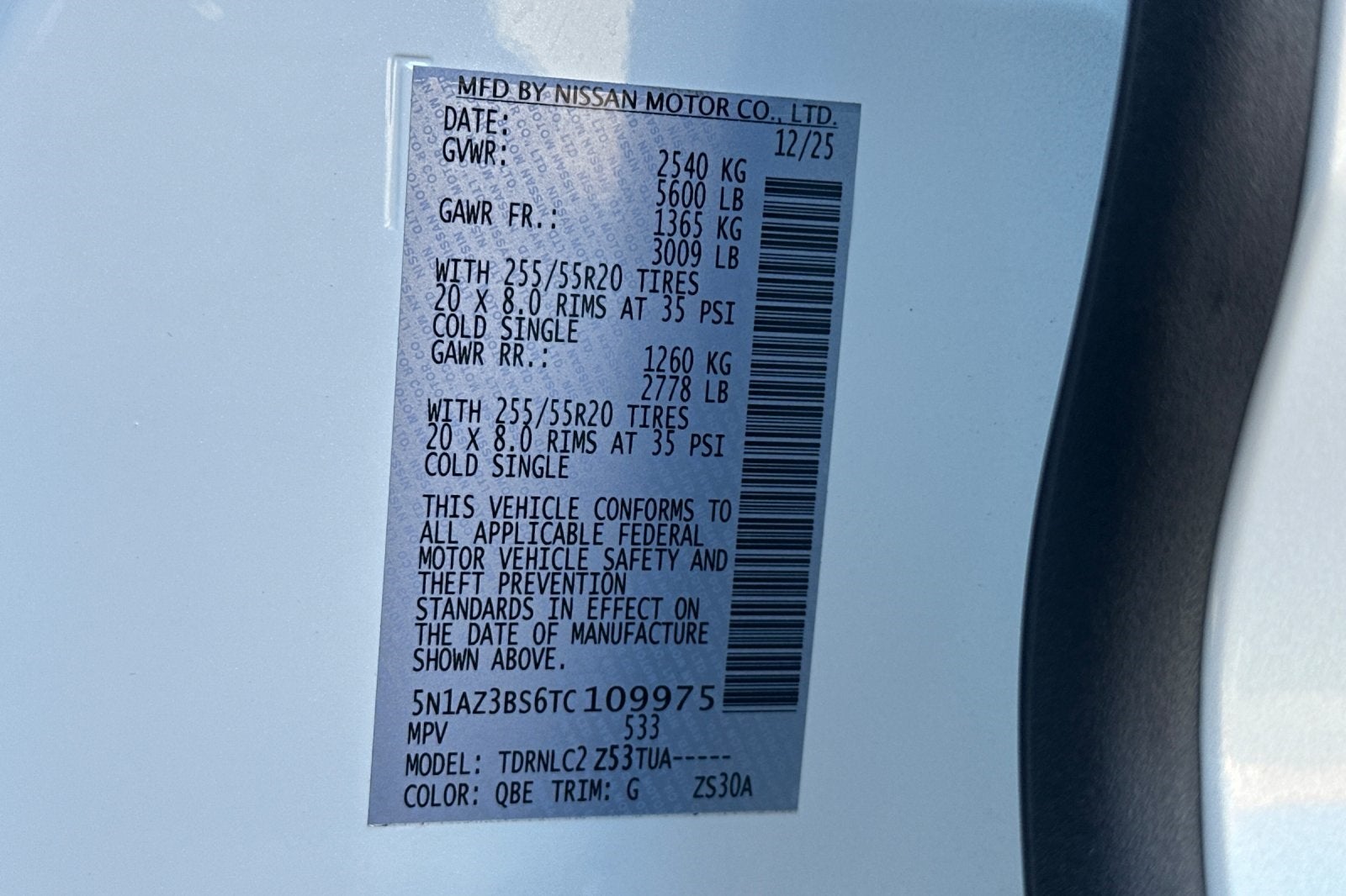 9-Speed Automatic, AWD, 20 Alloy Wheels, 4-Wheel Disc Brakes, 6 Speakers, ABS brakes, Air Conditioning, Alloy wheels, AM/FM radio: SiriusXM, Auto High-beam Headlights, Automatic temperature control, Brake assist, Bumpers: body-color, Carpeted Floor & Cargo Mats, Child-Seat-Sensing Airbag, Compass, Delay-off headlights, Driver door bin, Driver vanity mirror, Dual front impact airbags, Dual front side impact airbags, Electronic Stability Control, Emergency communication system: NissanConnect Services, Four wheel independent suspension, Front anti-roll bar, Front Bucket Seats, Front Center Armrest, Front dual zone A/C, Front reading lights, Fully automatic headlights, Garage door transmitter, Grained Splash Guards, Heated door mirrors, Heated Front Bucket Seats, Heated front seats, Illuminated entry, Knee airbag, Low tire pressure warning, Occupant sensing airbag, Outside temperature display, Overhead airbag, Overhead console, Panic alarm, Passenger door bin, Passenger vanity mirror, Power door mirrors, Power driver seat, Power Liftgate, Power passenger seat, Power steering, Power windows, Premium Paint, Prima-Tex Leatherette Seat Trim, Radio data system, Radio: NissanConnect, Rear anti-roll bar, Rear reading lights, Rear seat center armrest, Rear side impact airbag, Rear window defroster, Rear window wiper, Remote keyless entry, Security system, Speed control, Speed-Sensitive Wipers, Split folding rear seat, Spoiler, Steering wheel mounted audio controls, Tachometer, Telescoping steering wheel, Tilt steering wheel, Traction control, Trip computer, Variably intermittent wipers, and Wireless Apple CarPlay/Wireless Android Auto.