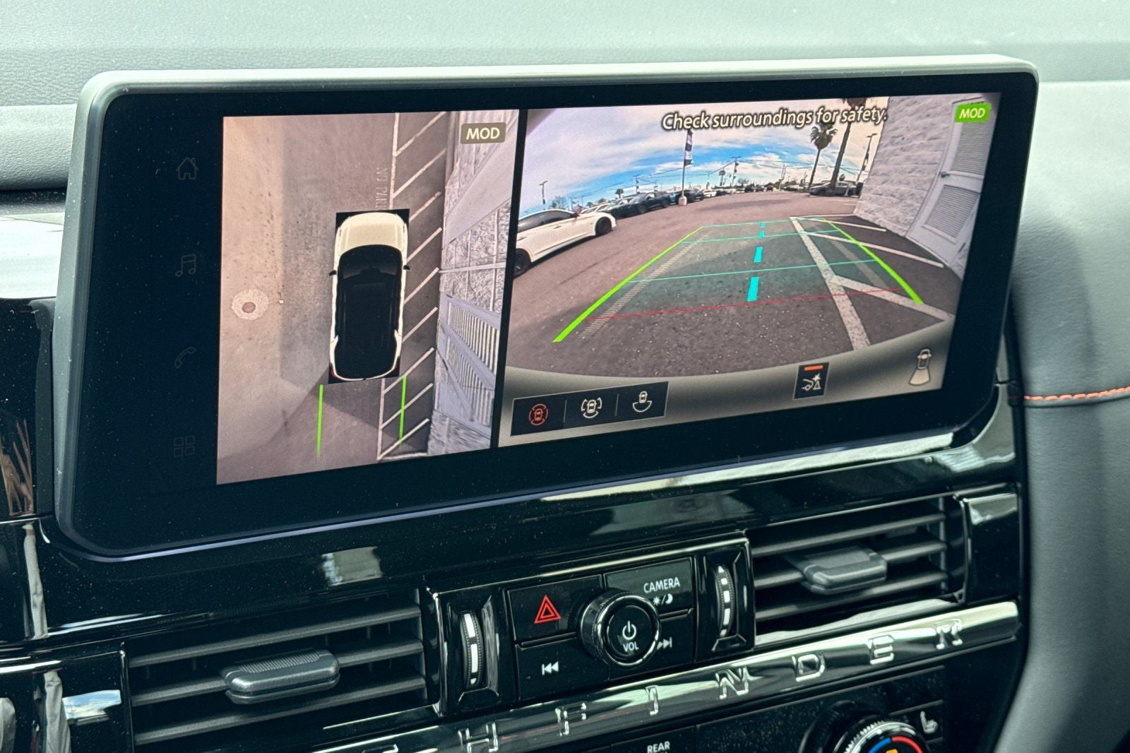 4WD, 18 Unique Alloy Wheels, 3rd row seats: bench, 4-Piece Black Splash Guards, 4-Wheel Disc Brakes, 6 Speakers, ABS brakes, Air Conditioning, Alloy wheels, AM/FM radio: SiriusXM w/360L, Auto High-beam Headlights, Automatic temperature control, Brake assist, Delay-off headlights, Driver door bin, Driver vanity mirror, Dual front impact airbags, Dual front side impact airbags, Electronic Stability Control, Emergency communication system: NissanConnect Services, Four wheel independent suspension, Front anti-roll bar, Front Bucket Seats, Front Center Armrest, Front dual zone A/C, Front fog lights, Front reading lights, Fully automatic headlights, Garage door transmitter: myQ Connected Garage, Heated door mirrors, Heated Front Bucket Seats, Heated front seats, Illuminated entry, Knee airbag, Leatherette and Cloth Seating Surfaces, Low tire pressure warning, NissanConnect featuring Apple CarPlay and Android Auto, Occupant sensing airbag, Outside temperature display, Overhead airbag, Overhead console, Panic alarm, Passenger door bin, Passenger vanity mirror, Power door mirrors, Power driver seat, Power Liftgate, Power steering, Power windows, Premium Paint, Radio data system, Radio: AM/FM Audio System with NissanConnect, Rear air conditioning, Rear anti-roll bar, Rear reading lights, Rear side impact airbag, Rear window defroster, Rear window wiper, Reclining 3rd row seat, Remote keyless entry, Rock Creek All-Season Floor Liners and All-Season Cargo Area Protector, Rock Creek Roof Rack, Roof rack, Security system, Speed control, Speed-sensing steering, Split folding rear seat, Spoiler, Steering wheel mounted audio controls, Tachometer, Telescoping steering wheel, Tilt steering wheel, Traction control, Trip computer, Turn signal indicator mirrors, and Variably intermittent wipers.