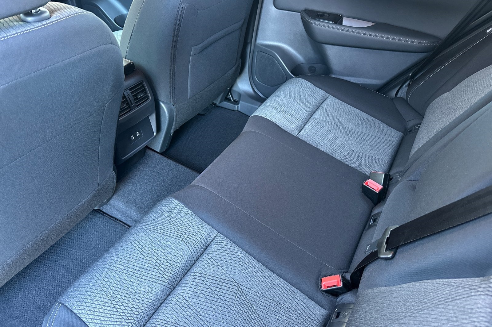 Cold Weather Package, 4-Wheel Disc Brakes, 6 Speakers, ABS brakes, Air Conditioning, Alloy wheels, AM/FM radio, Apple CarPlay/Android Auto, Auto High-beam Headlights, Automatic temperature control, Brake assist, Bumpers: body-color, Chrome Rear Bumper Protector, Cloth Seat Trim with Patterned Inserts, Delay-off headlights, Driver door bin, Driver vanity mirror, Dual front impact airbags, Dual front side impact airbags, Electronic Stability Control, Emergency communication system: NissanConnect Services, Four wheel independent suspension, Front anti-roll bar, Front Bucket Seats, Front Center Armrest, Front dual zone A/C, Front reading lights, Fully automatic headlights, Heated door mirrors, Illuminated entry, Knee airbag, Low tire pressure warning, Occupant sensing airbag, Outside temperature display, Overhead airbag, Overhead console, Panic alarm, Passenger door bin, Passenger vanity mirror, Power door mirrors, Power driver seat, Power Liftgate, Power steering, Power windows, Radio data system, Radio: AM/FM NissanConnect, Rear anti-roll bar, Rear seat center armrest, Rear side impact airbag, Rear window defroster, Rear window wiper, Remote keyless entry, Speed control, Speed-sensing steering, Speed-Sensitive Wipers, Split folding rear seat, Spoiler, Steering wheel mounted audio controls, Tachometer, Telescoping steering wheel, Tilt steering wheel, Traction control, Trip computer, Variably intermittent wipers, and Wheels: 18 Dark Painted Alloy.