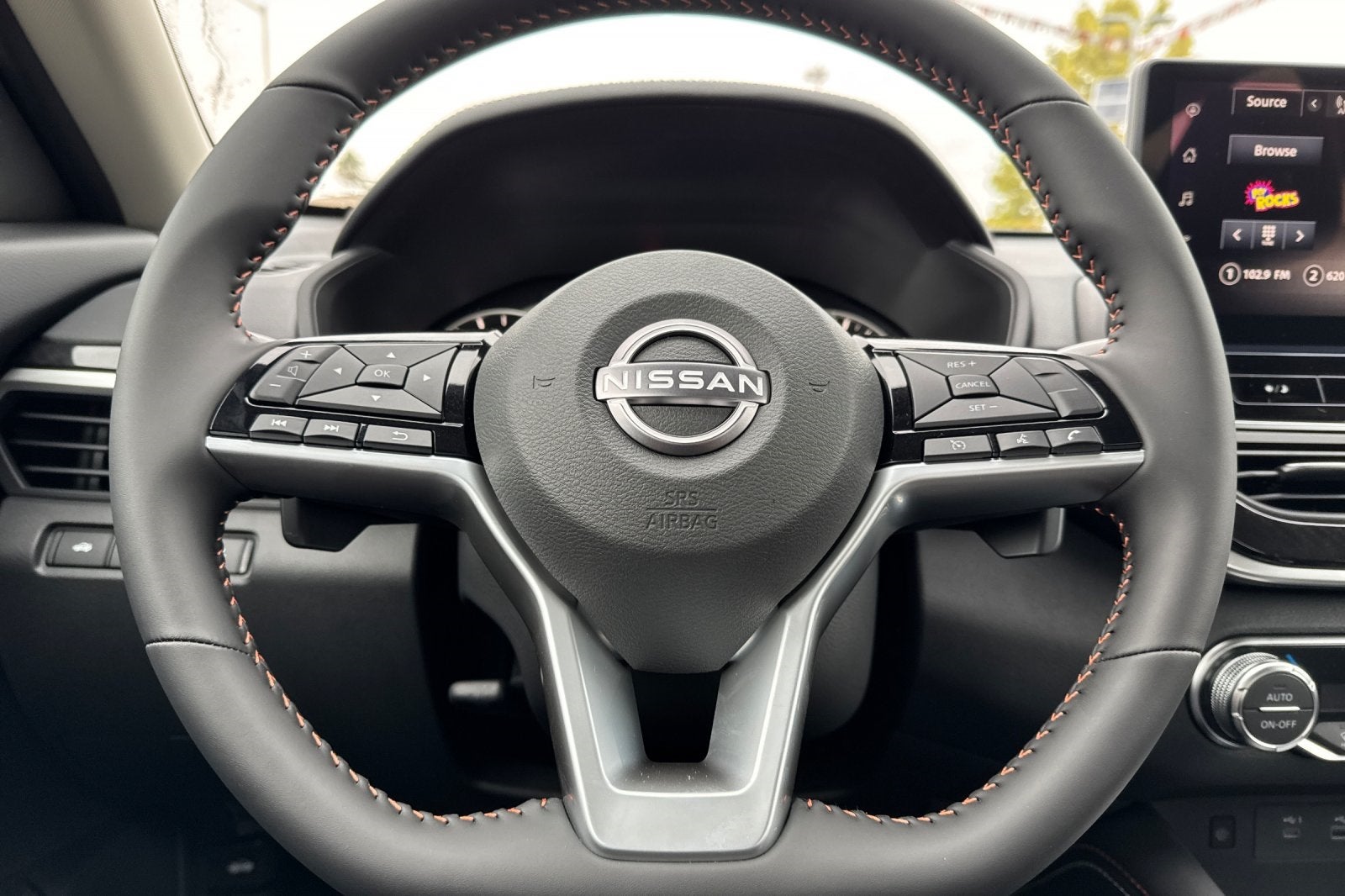SR Premium Package (2-Way Driver Power Lumbar Support, 4-Way Power Passenger Seat, Dual Zone Automatic HVAC, Heated Front Seats, Leather-Appointed Seat Trim, NissanConnect, Premium Sport Interior Finishers, Remote Engine Start w/Intelligent Climate Control, and Single Panel Moonroof), CVT with Xtronic, 4-Wheel Disc Brakes, 6 Speakers, ABS brakes, Air Conditioning, Alloy wheels, AM/FM radio: SiriusXM, Auto High-beam Headlights, Blind Spot Warning, Body-Colored Rear Spoiler, Body-Colored Splash Guards, Brake assist, Bumpers: body-color, Delay-off headlights, Driver door bin, Driver vanity mirror, Dual front impact airbags, Dual front side impact airbags, Electronic Stability Control, Four wheel independent suspension, Front anti-roll bar, Front Bucket Seats, Front Center Armrest, Front reading lights, Fully automatic headlights, Illuminated entry, Illuminated Kick Plates, Knee airbag, Leather Shift Knob, Low tire pressure warning, NissanConnect featuring Apple CarPlay and Android Auto, Occupant sensing airbag, Outside temperature display, Overhead airbag, Overhead console, Panic alarm, Passenger door bin, Passenger vanity mirror, Power door mirrors, Power driver seat, Power steering, Power windows, Radio data system, Radio: AM/FM Audio System, Rear anti-roll bar, Rear Parking Sensors, Rear reading lights, Rear seat center armrest, Rear side impact airbag, Rear window defroster, Remote keyless entry, Security system, Speed control, Speed-sensing steering, Speed-Sensitive Wipers, Split folding rear seat, Sport Seat Trim, SR Floor Mats/Trunk Mat/Hideaway Nets, Steering wheel mounted audio controls, Tachometer, Telescoping steering wheel, Tilt steering wheel, Traction control, Trip computer, Unique Sport Seats, Variably intermittent wipers, and Wheels: 19 Sport Machined Alloy.