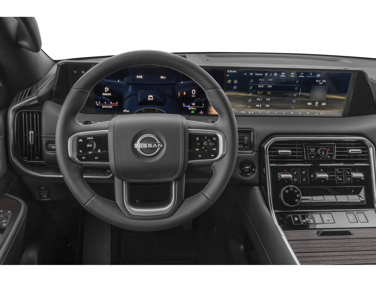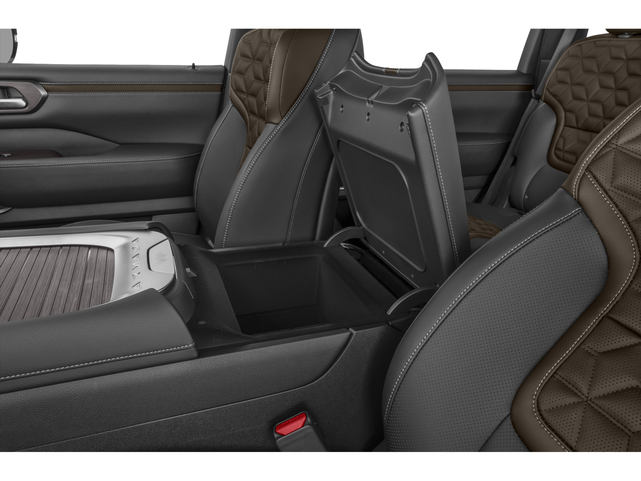 Split Bench Seat Package (2nd-Row Split Bench Seat w/40/20/40-Split Folding, Center Armrest w/2 Cupholders, and EZ Flex 2nd-Row Seating System w/1-Touch Release), 4WD, 12 Speakers, 3rd row seats: split-bench, 4-Wheel Disc Brakes, ABS brakes, Adaptive suspension, Air Conditioning, Alloy wheels, AM/FM radio: SiriusXM, Anti-whiplash front head restraints, Auto High-beam Headlights, Auto tilt-away steering wheel, Auto-dimming door mirrors, Auto-dimming Rear-View mirror, Auto-leveling suspension, Automatic temperature control, Brake assist, Bumpers: body-color, Carpeted Floor Mats - Bench Seat, Center Front Spoiler, Climate Controlled Heated & Ventilated Front Seats, Delay-off headlights, Driver door bin, Driver vanity mirror, Dual front impact airbags, Dual front side impact airbags, Electronic Stability Control, Emergency communication system: NissanConnect Services, Four wheel independent suspension, Front anti-roll bar, Front Bucket Seats, Front Center Armrest, Front dual zone A/C, Front fog lights, Front reading lights, Fully automatic headlights, Garage door transmitter: myQ Connected Garage, Genuine wood dashboard insert, Heads-Up Display, Heated door mirrors, Heated front seats, Heated rear seats, Heated steering wheel, HVAC memory, Illuminated entry, Illuminated Kick Plates, Knee airbag, Leather steering wheel, Low tire pressure warning, Memory seat, Navigation System, Occupant sensing airbag, Outside temperature display, Overhead airbag, Overhead console, Panic alarm, Passenger door bin, Passenger vanity mirror, Power door mirrors, Power driver seat, Power Liftgate, Power moonroof, Power passenger seat, Power steering, Power windows, ProPILOT Assist 2.1 (PLAT RESERVE Grade), Quilted Leather Seat Trim, Radio: NissanConnect w/SiriusXM 360L, Rain sensing wipers, Rear air conditioning, Rear anti-roll bar, Rear Bumper Protector, Rear reading lights, Rear window defroster, Rear window wiper, Reclining 3rd row seat, Remote keyless entry, Roof Rail Cross Bars, Security system, Speed control, Speed-sensing steering, Speed-Sensitive Wipers, Splash Guards, Split folding rear seat, Spoiler, Steering wheel memory, Steering wheel mounted audio controls, Super Premium Paint, Tachometer, Telescoping steering wheel, Tilt steering wheel, Traction control, Trip computer, Turn signal indicator mirrors, Variably intermittent wipers, Ventilated front seats, Voltmeter, and Wheels: 22 Painted Alloy.
