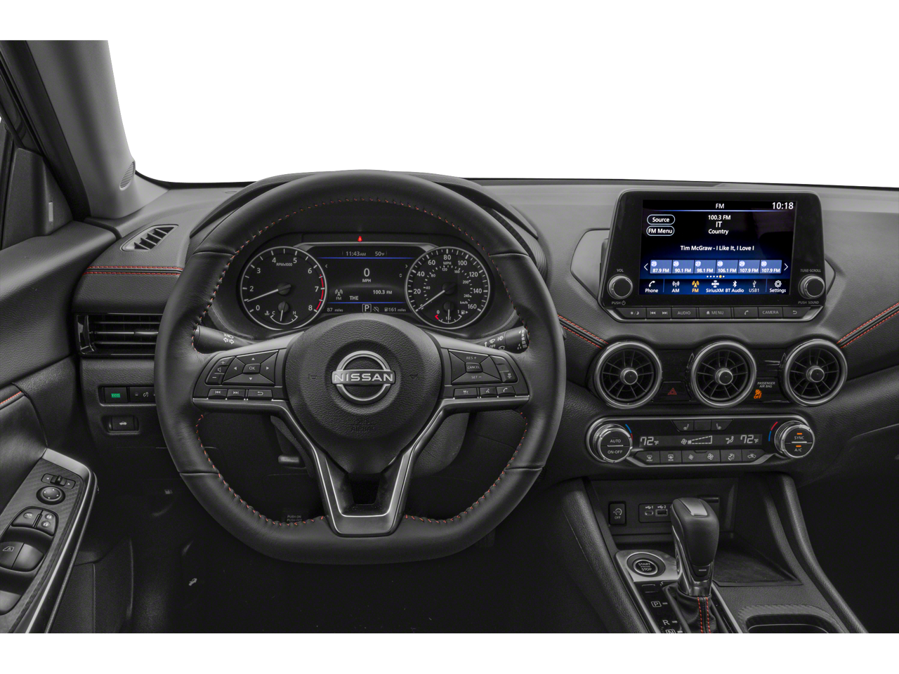 Trunk Package (Hide-A-Way Trunk Net), CVT with Xtronic, Sport Cloth, 18 Alloy Wheels, 2-Tone Premium Paint, 4-Wheel Disc Brakes, 8 Speakers, ABS brakes, Air Conditioning, Alloy wheels, AM/FM radio: SiriusXM, Auto High-beam Headlights, Automatic temperature control, Blind Spot Warning, Brake assist, Bumpers: body-color, Carpeted Floor Mats with Trunk Mat, Clear Rear Bumper Protector, Delay-off headlights, Door Sill Plates, Driver door bin, Driver vanity mirror, Dual front impact airbags, Dual front side impact airbags, Electronic Stability Control, Four wheel independent suspension, Front anti-roll bar, Front Bucket Seats, Front Center Armrest, Front dual zone A/C, Front reading lights, Fully automatic headlights, Heated door mirrors, Heated Front Bucket Seats, Heated front seats, Illuminated entry, Knee airbag, Leather Shift Knob, Low tire pressure warning, NissanConnect featuring Apple CarPlay and Android Auto, Occupant sensing airbag, Outside temperature display, Overhead airbag, Overhead console, Panic alarm, Passenger door bin, Passenger vanity mirror, Power door mirrors, Power steering, Power windows, Radio data system, Radio: AM/FM with RDS/MP3/Aux-in, Rear anti-roll bar, Rear Parking Sensors, Rear seat center armrest, Rear side impact airbag, Rear window defroster, Remote keyless entry, Security system, Speed control, Speed-sensing steering, Split folding rear seat, Spoiler, Sport Cloth Seat Trim, Steering wheel mounted audio controls, Tachometer, Telescoping steering wheel, Tilt steering wheel, Traction control, Trip computer, Turn signal indicator mirrors, and Variably intermittent wipers.