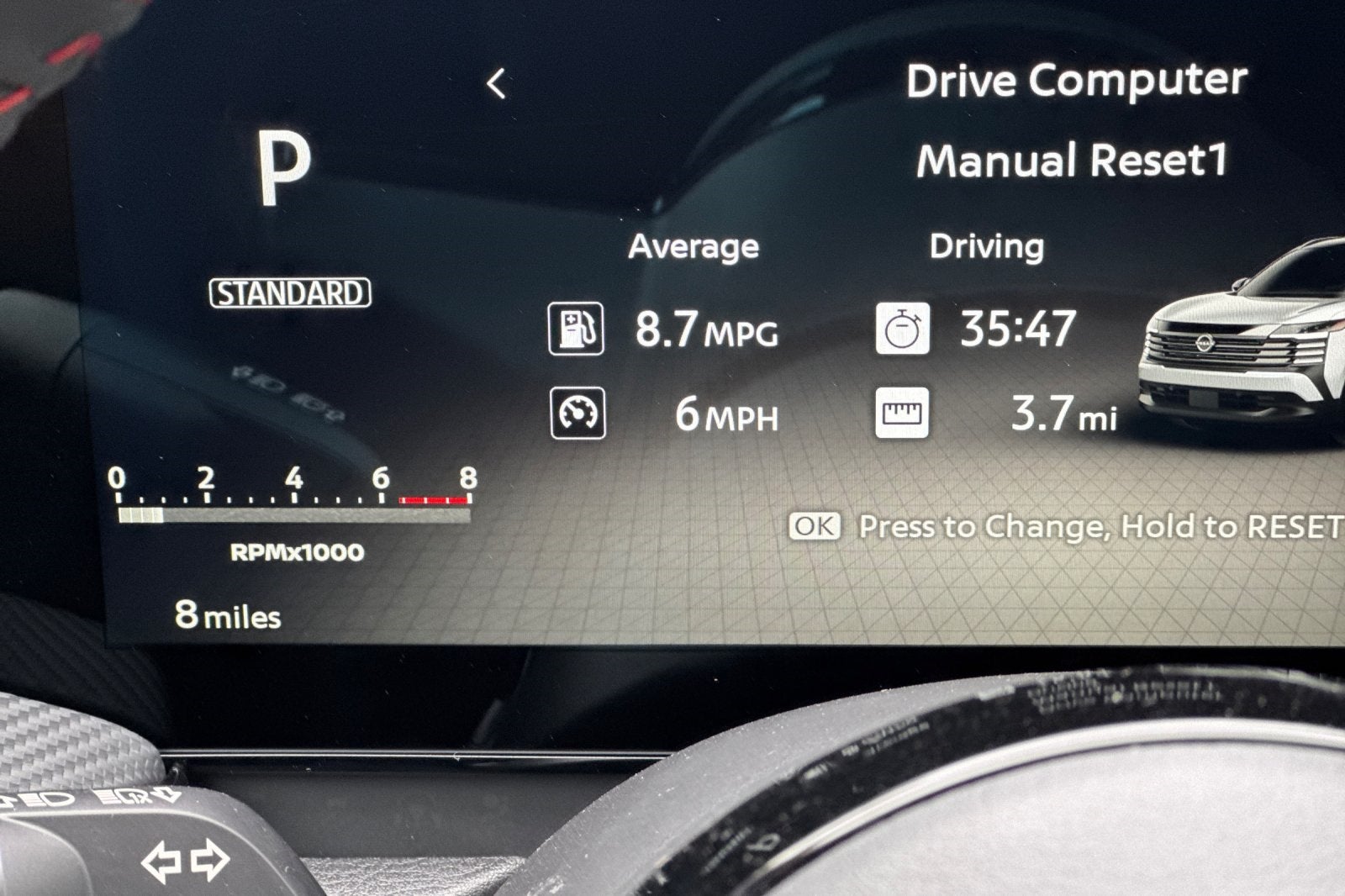 Cold Weather Package (Heated Front Seats, Heated Mirrors, and Rear Floor Heater Ducts), 17 Alloy Wheels, 19 Alloy Wheels, 4-Wheel Disc Brakes, 6 Speakers, ABS brakes, Air Conditioning, Alloy wheels, AM/FM radio, Auto High-beam Headlights, Automatic temperature control, Brake assist, Bumpers: body-color, Carpeted Floor Mats, Crossbars, Delay-off headlights, Driver door bin, Driver vanity mirror, Dual front impact airbags, Dual front side impact airbags, Electronic Stability Control, Emergency communication system: NissanConnect Services, Exterior Parking Camera Rear, Four wheel independent suspension, Front anti-roll bar, Front Bucket Seats, Front Center Armrest, Front reading lights, Fully automatic headlights, Garage door transmitter: myQ Connected Garage, Illuminated entry, Knee airbag, Leather Shift Knob, Leather steering wheel, Low tire pressure warning, NissanConnect featuring Apple CarPlay and Android Auto, Occupant sensing airbag, Outside temperature display, Overhead airbag, Overhead console, Panic alarm, Passenger door bin, Passenger vanity mirror, Power door mirrors, Power steering, Power windows, Radio data system, Radio: AM/FM/SiriusXM Audio System, Rear anti-roll bar, Rear reading lights, Rear seat center armrest, Rear side impact airbag, Rear window defroster, Rear window wiper, Remote keyless entry, Security system, Speed control, Speed-sensing steering, Splash Guards, Split folding rear seat, Spoiler, Sport Leatherette w/Cloth Insert Seat Trim, Sport steering wheel, Steering wheel mounted audio controls, Tachometer, Telescoping steering wheel, Tilt steering wheel, Traction control, Trip computer, Turn signal indicator mirrors, and Variably intermittent wipers.