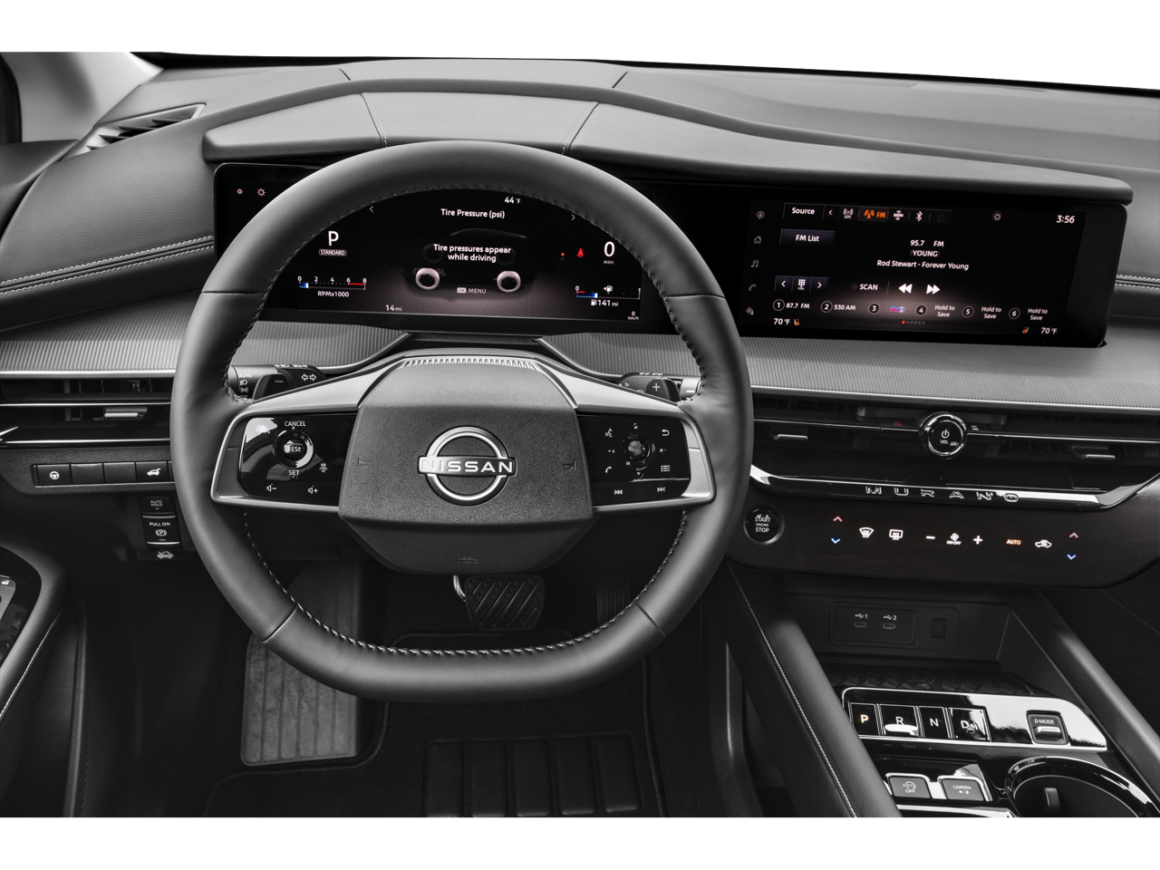 9-Speed Automatic, AWD, 20 Alloy Wheels, 4-Wheel Disc Brakes, 6 Speakers, ABS brakes, Air Conditioning, Alloy wheels, AM/FM radio: SiriusXM, Auto High-beam Headlights, Automatic temperature control, Brake assist, Bumpers: body-color, Carpeted Floor & Cargo Mats, Child-Seat-Sensing Airbag, Compass, Delay-off headlights, Driver door bin, Driver vanity mirror, Dual front impact airbags, Dual front side impact airbags, Electronic Stability Control, Emergency communication system: NissanConnect Services, Four wheel independent suspension, Front anti-roll bar, Front Bucket Seats, Front Center Armrest, Front dual zone A/C, Front reading lights, Fully automatic headlights, Garage door transmitter, Grained Splash Guards, Heated door mirrors, Heated Front Bucket Seats, Heated front seats, Illuminated entry, Knee airbag, Low tire pressure warning, Occupant sensing airbag, Outside temperature display, Overhead airbag, Overhead console, Panic alarm, Passenger door bin, Passenger vanity mirror, Power door mirrors, Power driver seat, Power Liftgate, Power passenger seat, Power steering, Power windows, Premium Paint, Prima-Tex Leatherette Seat Trim, Radio data system, Radio: NissanConnect, Rear anti-roll bar, Rear reading lights, Rear seat center armrest, Rear side impact airbag, Rear window defroster, Rear window wiper, Remote keyless entry, Security system, Speed control, Speed-Sensitive Wipers, Split folding rear seat, Spoiler, Steering wheel mounted audio controls, Tachometer, Telescoping steering wheel, Tilt steering wheel, Traction control, Trip computer, Variably intermittent wipers, and Wireless Apple CarPlay/Wireless Android Auto.