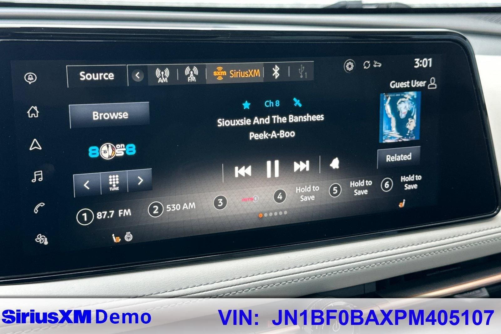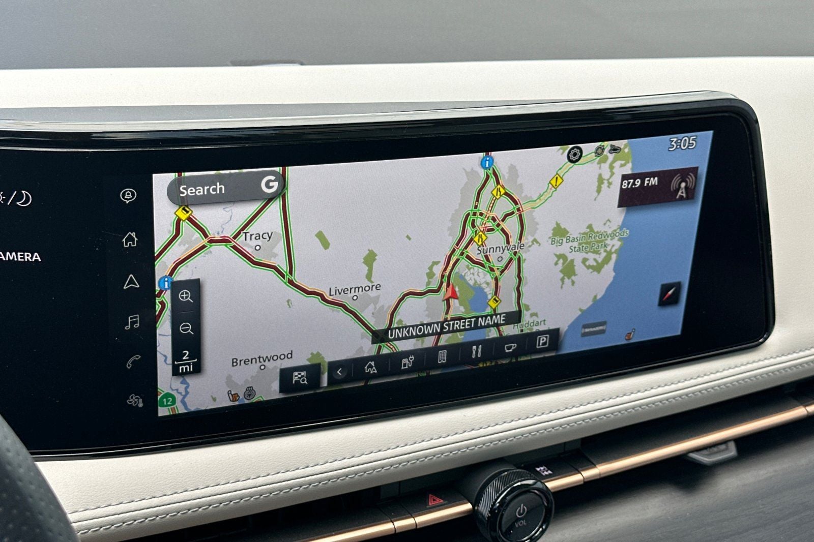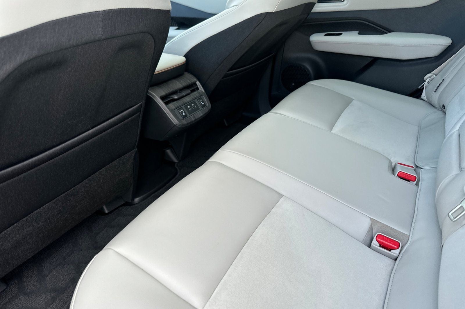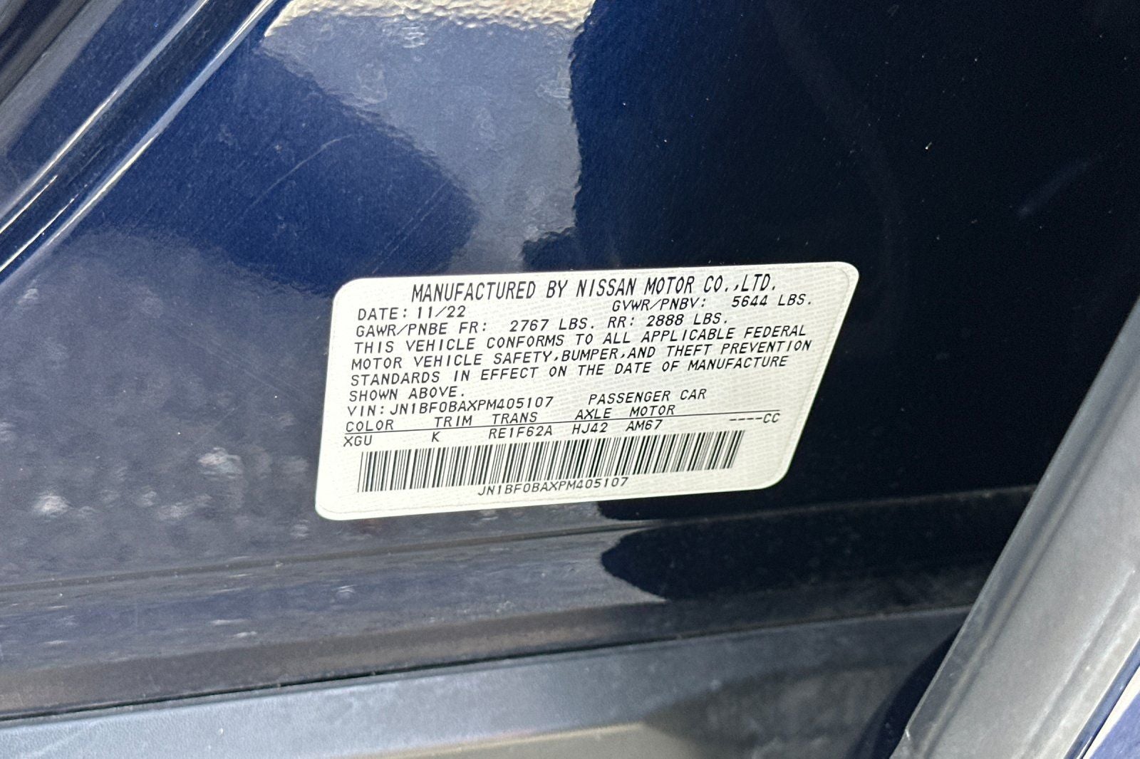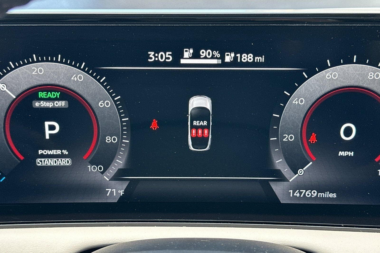 11.090 Final Drive Ratio, 19 Alloy Wheels, 4-Wheel Disc Brakes, 6 Speakers, ABS brakes, Air Conditioning, Alloy wheels, AM/FM radio: SiriusXM, Auto High-beam Headlights, Automatic temperature control, Brake assist, Bumpers: body-color, Carpeted Floor Mats & First Aid Kit, Delay-off headlights, Driver door bin, Driver vanity mirror, Dual front impact airbags, Dual front side impact airbags, Electronic Stability Control, Emergency communication system: NissanConnect EV & Services, Four wheel independent suspension, Front anti-roll bar, Front Bucket Seats, Front Center Armrest, Front dual zone A/C, Front fog lights, Front reading lights, Garage door transmitter: HomeLink, Heads-Up Display, Heated door mirrors, Heated Front Bucket Seats, Heated front seats, Heated rear seats, Heated steering wheel, Illuminated entry, Illuminated Kick Plates, Knee airbag, Leather steering wheel, Leatherette Seating Surfaces, Low tire pressure warning, Memory seat, Navigation system: Nissan Door to Door Connected Navigation, Occupant sensing airbag, Outside temperature display, Overhead airbag, Panic alarm, Passenger door bin, Passenger vanity mirror, Power door mirrors, Power driver seat, Power Liftgate, Power moonroof, Power passenger seat, Power steering, Power windows, Radio: AM/FM Audio System, Rain sensing wipers, Rear anti-roll bar, Rear reading lights, Rear seat center armrest, Rear side impact airbag, Rear window defroster, Rear window wiper, Remote keyless entry, Security system, Speed control, Speed-sensing steering, Speed-Sensitive Wipers, Split folding rear seat, Spoiler, Steering wheel mounted audio controls, Telescoping steering wheel, Tilt steering wheel, Traction control, Trip computer, and Variably intermittent wipers.