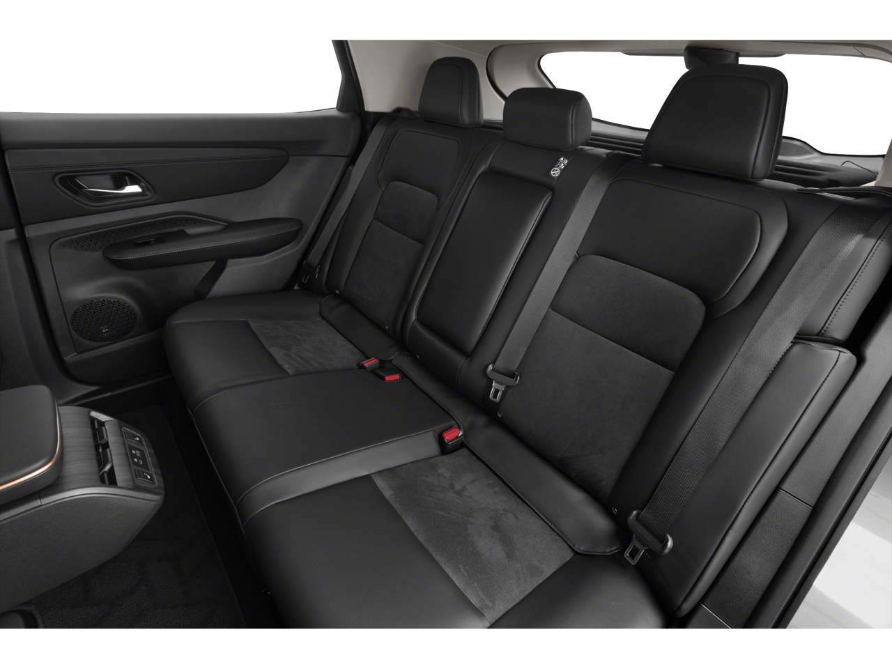 19 Alloy Wheels, 4-Wheel Disc Brakes, 6 Speakers, ABS brakes, Air Conditioning, Alloy wheels, AM/FM radio: SiriusXM, Auto High-beam Headlights, Automatic temperature control, Brake assist, Bumpers: body-color, Carpeted Floor Mats & First Aid Kit, Delay-off headlights, Driver door bin, Driver vanity mirror, Dual front impact airbags, Dual front side impact airbags, Electronic Stability Control, Emergency communication system: NissanConnect EV & Services, Four wheel independent suspension, Front anti-roll bar, Front Bucket Seats, Front Center Armrest, Front dual zone A/C, Front fog lights, Front reading lights, Garage door transmitter: HomeLink, Heads-Up Display, Heated door mirrors, Heated Front Bucket Seats, Heated front seats, Heated rear seats, Heated steering wheel, Illuminated entry, Illuminated Kick Plates, Knee airbag, Leather steering wheel, Leatherette Seating Surfaces, Low tire pressure warning, Memory seat, Navigation system: Nissan Door to Door Connected Navigation, Nissan USB Charging Cable Set, Occupant sensing airbag, Outside temperature display, Overhead airbag, Panic alarm, Passenger door bin, Passenger vanity mirror, Power door mirrors, Power driver seat, Power Liftgate, Power moonroof, Power passenger seat, Power steering, Power windows, Radio: AM/FM Audio System, Rain sensing wipers, Rear anti-roll bar, Rear reading lights, Rear seat center armrest, Rear side impact airbag, Rear window defroster, Rear window wiper, Remote keyless entry, Security system, Speed control, Speed-sensing steering, Speed-Sensitive Wipers, Split folding rear seat, Spoiler, Steering wheel mounted audio controls, Telescoping steering wheel, Tilt steering wheel, Traction control, Trip computer, and Variably intermittent wipers.