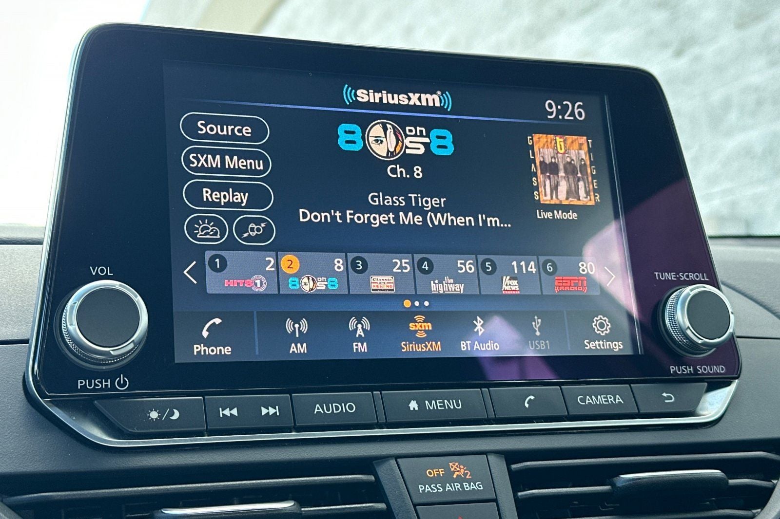 - Radio: AM/FM Audio System -inc: RDS, MP3 and aux-in, 6 speakers, NissanConnect 8" color display w/multi-touch control, Bluetooth® hands-free phone system, streaming audio via Bluetooth®, hands-free text messaging assistant, 2 front illuminated USB ports (1 type-A and 1 type-C) for compatible devices, Apple CarPlay, Android Auto, SiriusXM Radio, Siri Eyes Free, Google Assistant voice recognition and 2 rear illuminated USB ports (1 type-A and 1 type-C)